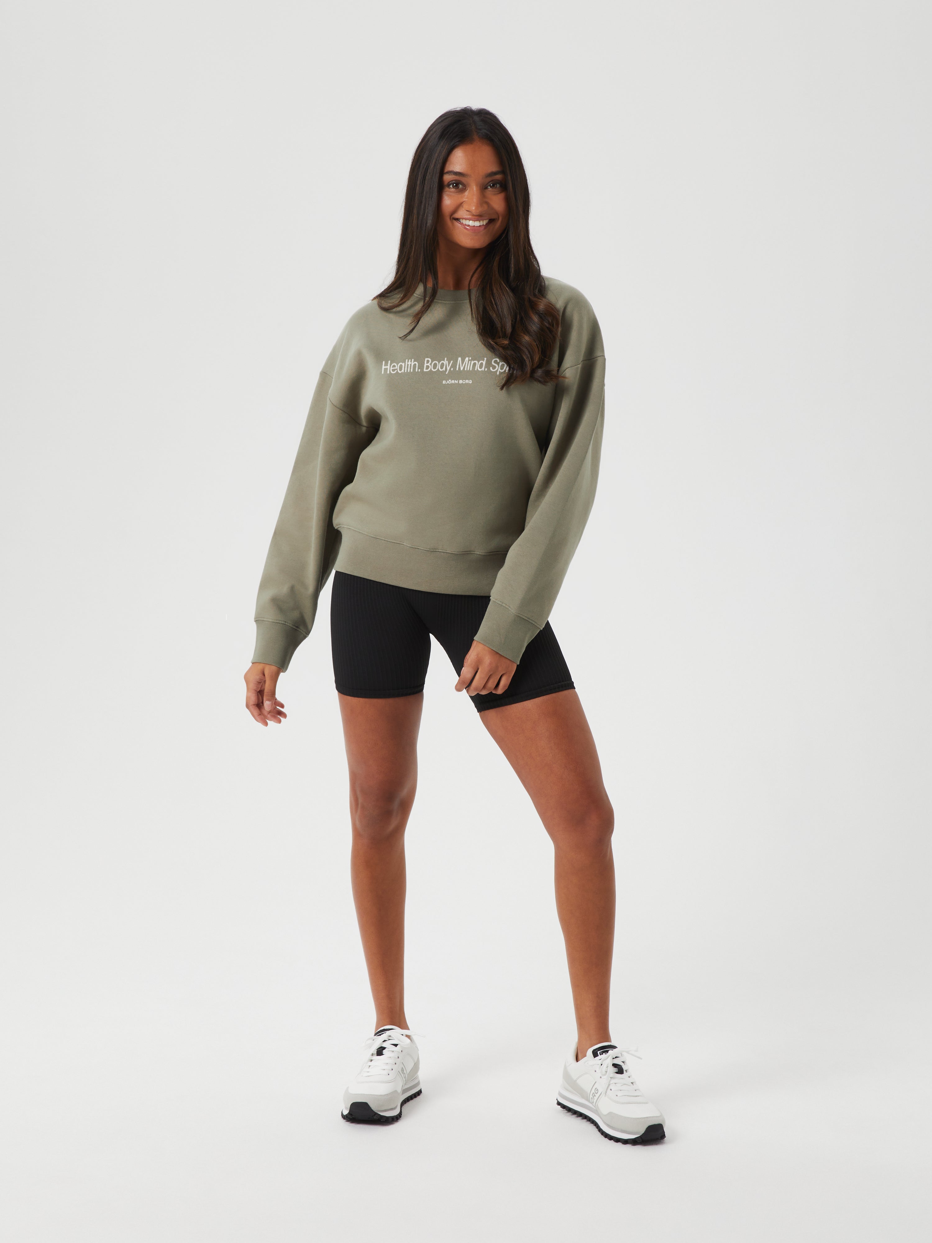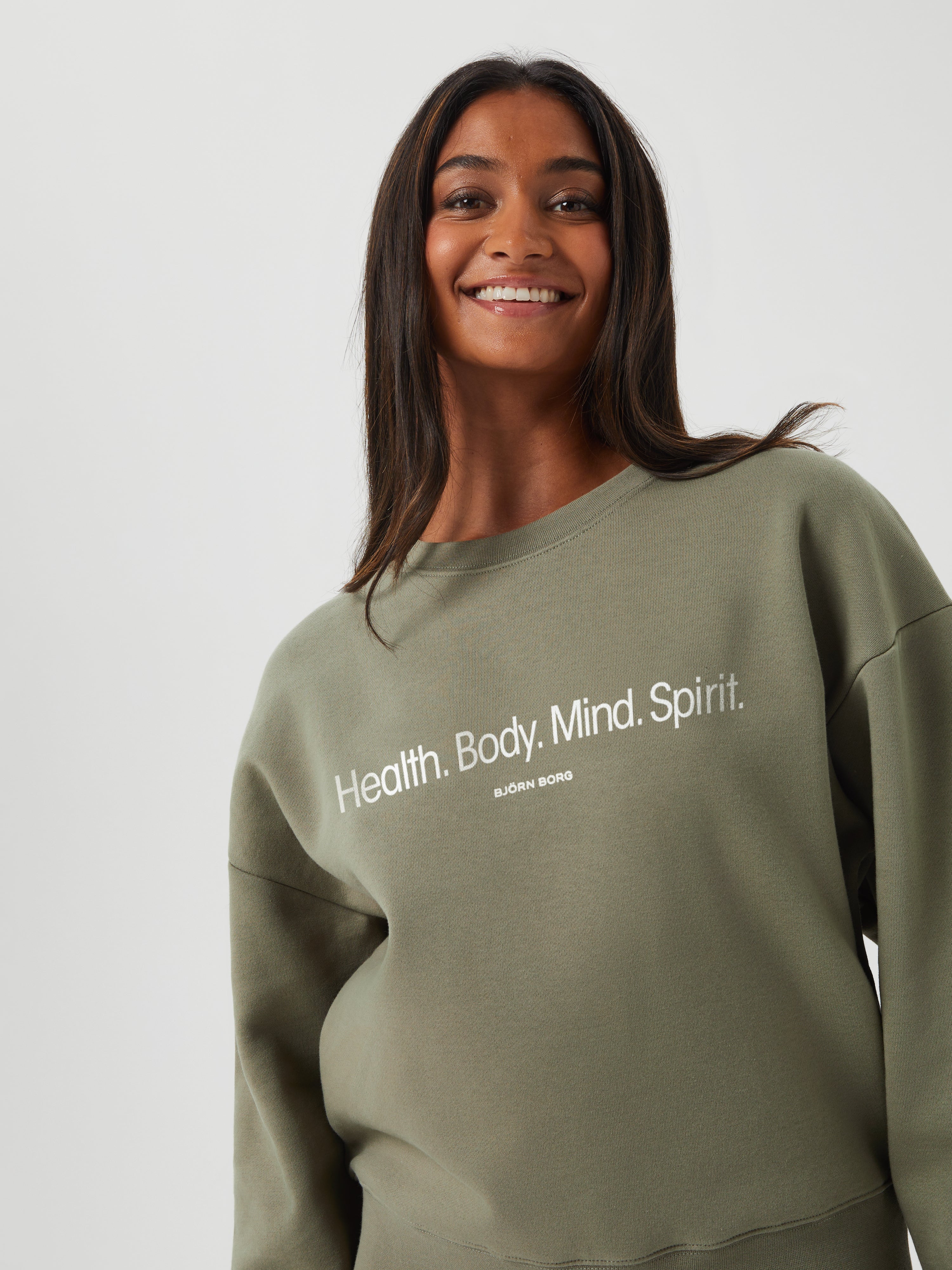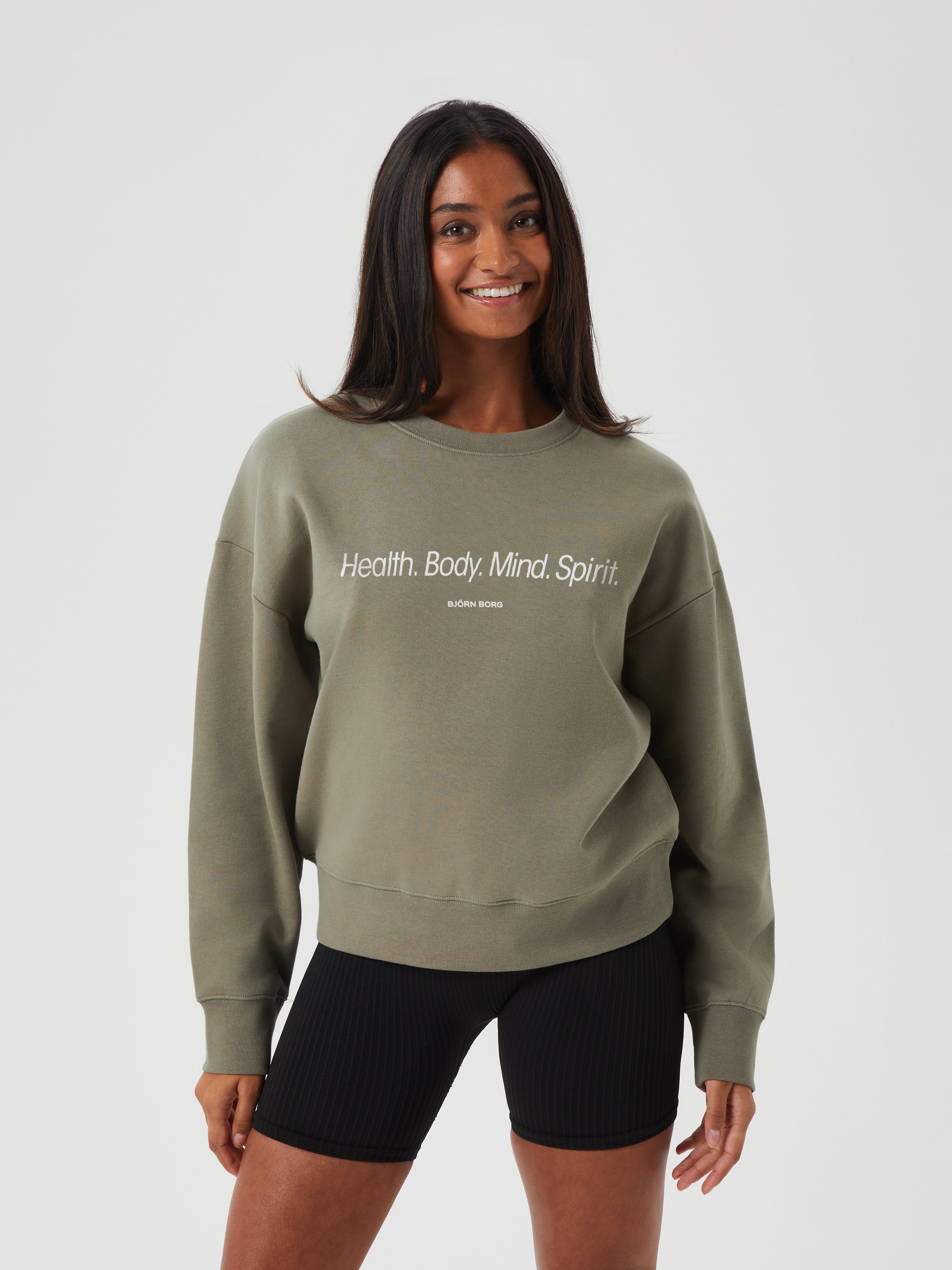 The Björn Borg Borg Boyfriend Crew is a comfortable women’s sweatshirt made from a blend of recycled cotton and recycled polyester in soft fleece that’s brushed inside. It comes in an oversized fit with a dropped shoulder, and features ribbed cuffs and waist, with a ribbed round neck and a graphic print on the front.