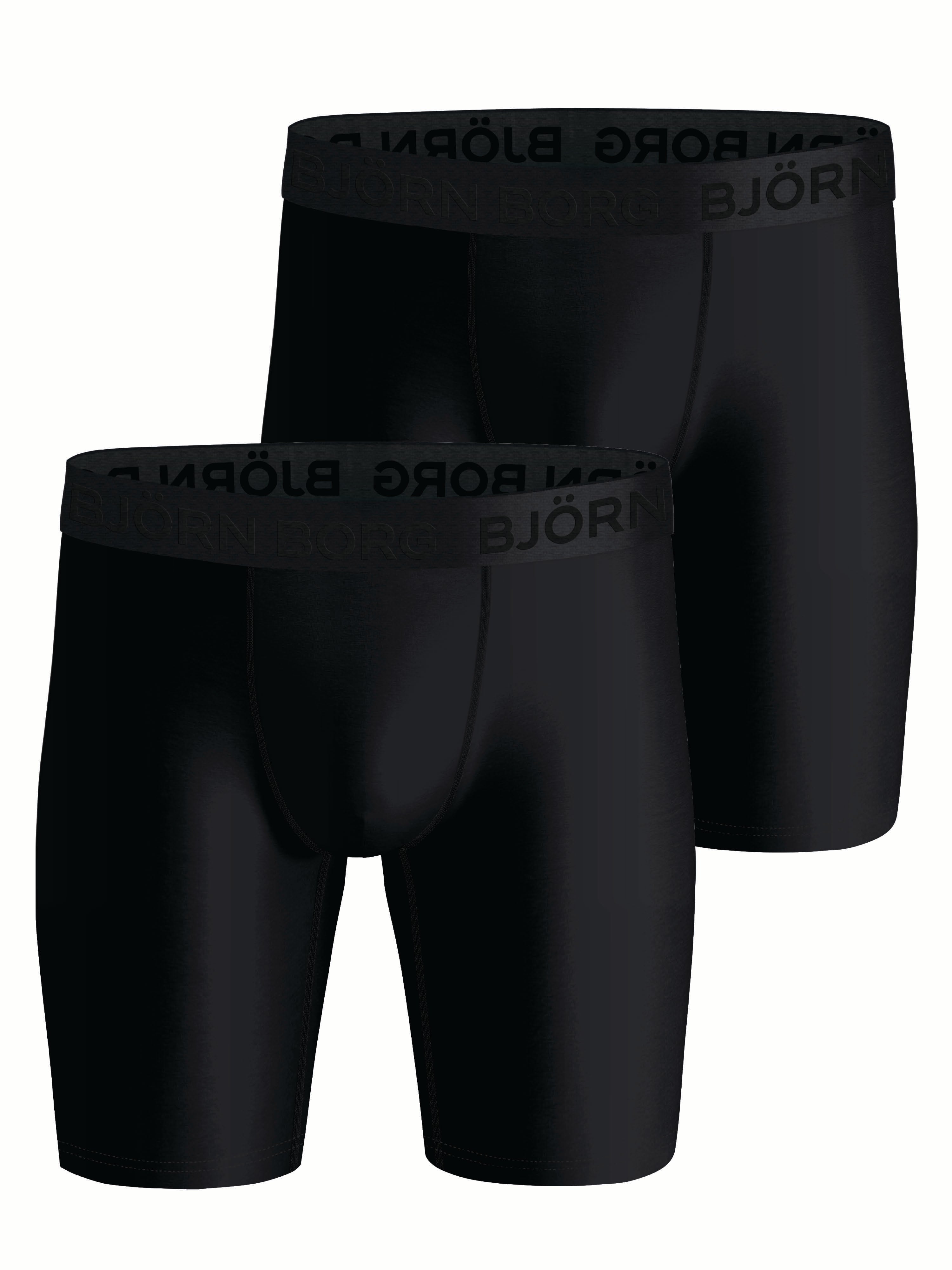 The Björn Borg Performance Boxer Long Leg 2-pack is a double pack of top training underwear made from soft recycled polyester stretch quality fabric. They have mid-rise waist and a longer leg length, with the perfect fit for better performance. Featuring Hydro Pro functionality that wicks moisture away from the skin to keep you dry, smooth seams and elastic to avoid chafing, and a soft elastic logo waistband in microfibre for extra comfort.