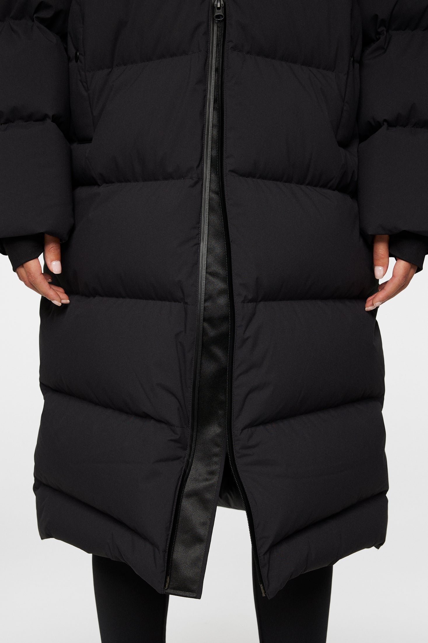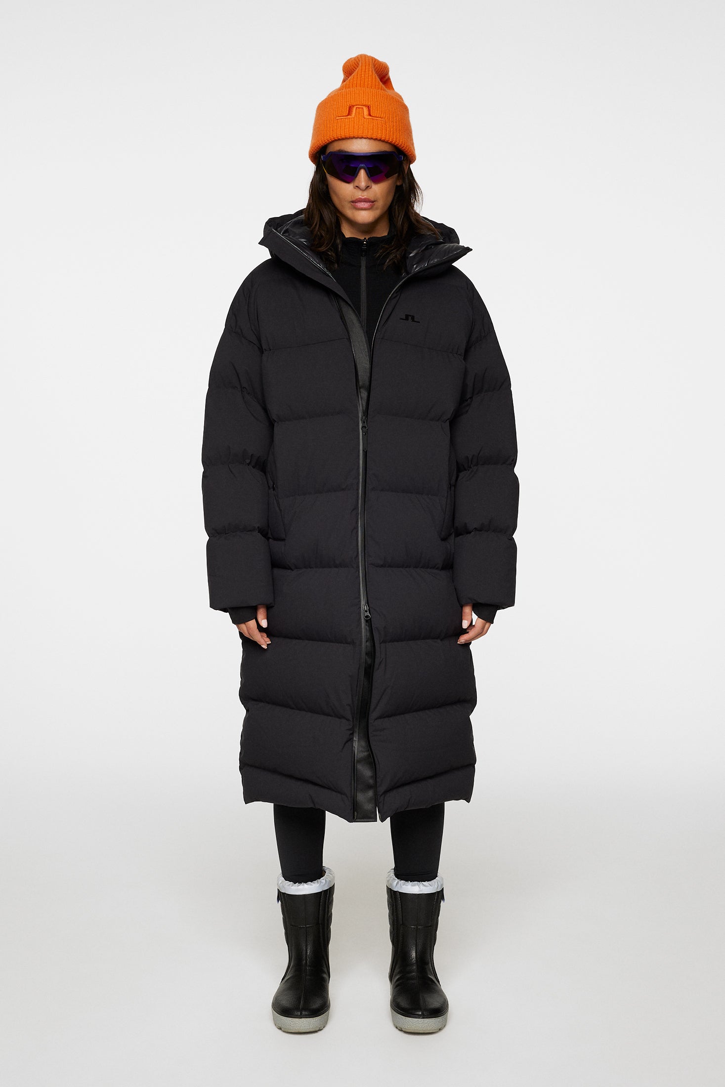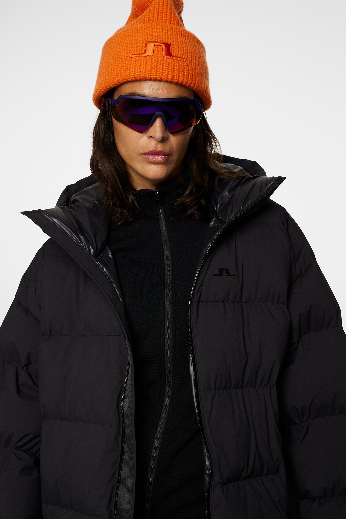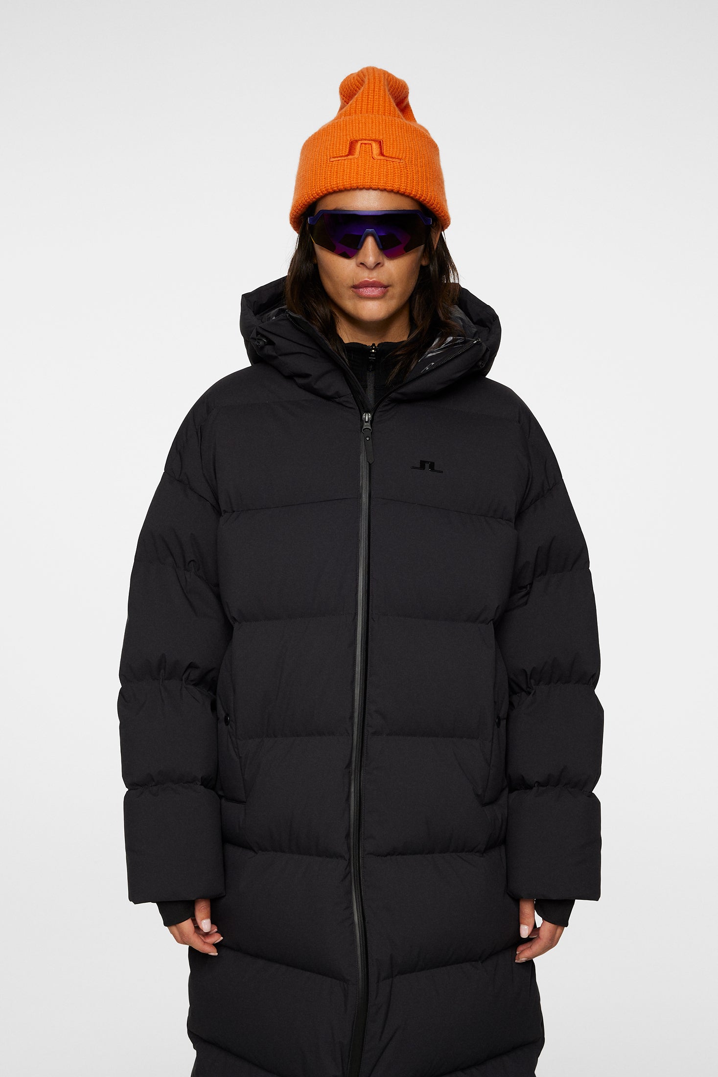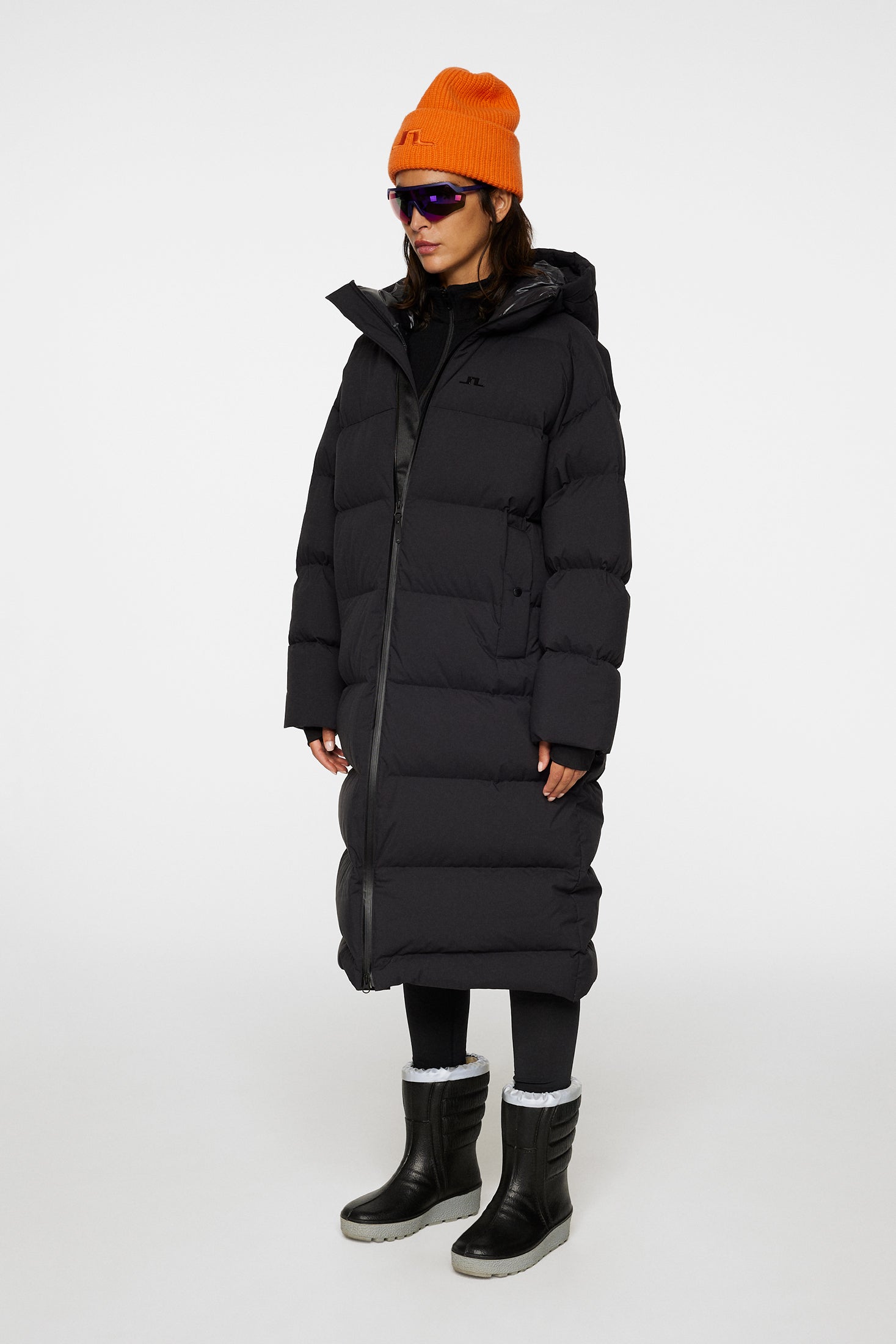 Complete your winter ensemble with our Carriage Parka, crafted in Soft Tech fabric and down quilted to ensure unparalleled comfort and style in cold weather. The shiny lining in our VX RE:SKI fabric offers a luxurious touch and exceptional durability. Designed with your ultimate protection and convenience, it features a drawcord adjustable hood for customizable coverage and elastic gaiters at the cuffs to seal out the cold. The welt pockets with snap buttons offer secure storage for your essentials, while the Aquaguard 2-way center front zip provides added protection against the elements. Adorned with the iconic JL bridge logo at the sleeve, this parka is the epitome of winter elegance.