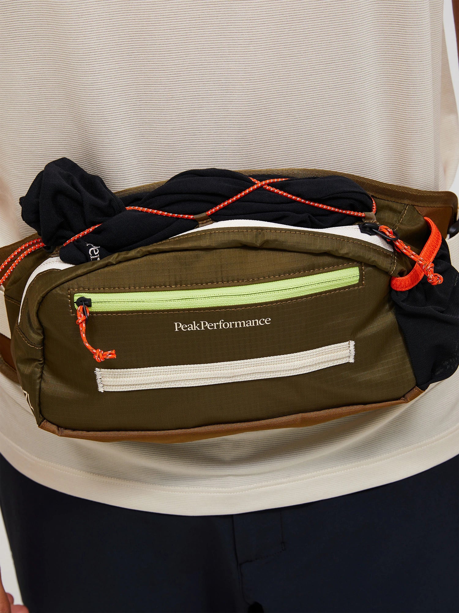 A comfortable and functional hip bag for trail biking and other mountain activities. Perfect storage for your smaller necessities. Made with a durable and water-repellent fabric.