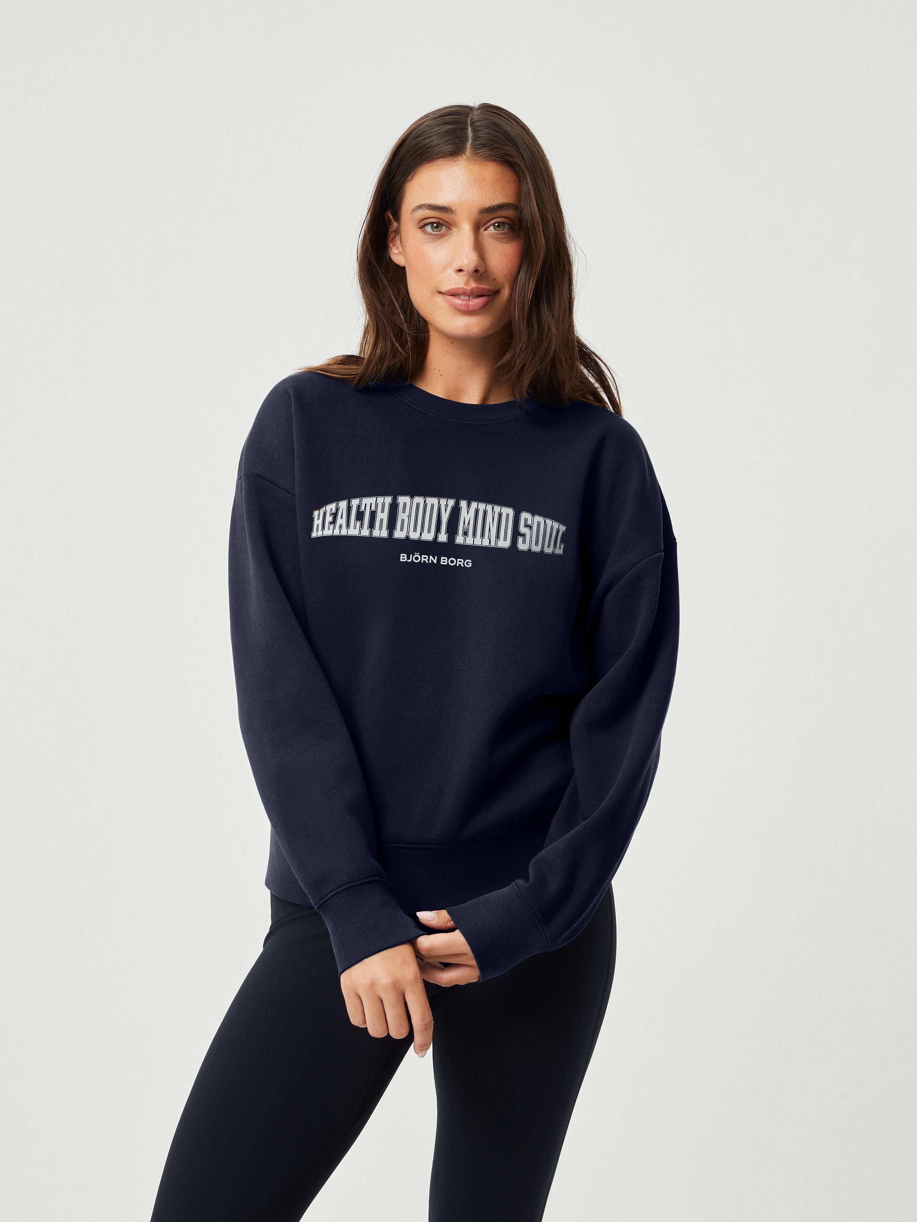 The Björn Borg Ace Boyfriend Crew is a women’s crewneck sweater made from a blend of cotton and polyester in soft fleece that’s brushed inside. It comes in an oversized fit with a dropped shoulder, and has a ribbed round neck and a large graphic print on the chest.