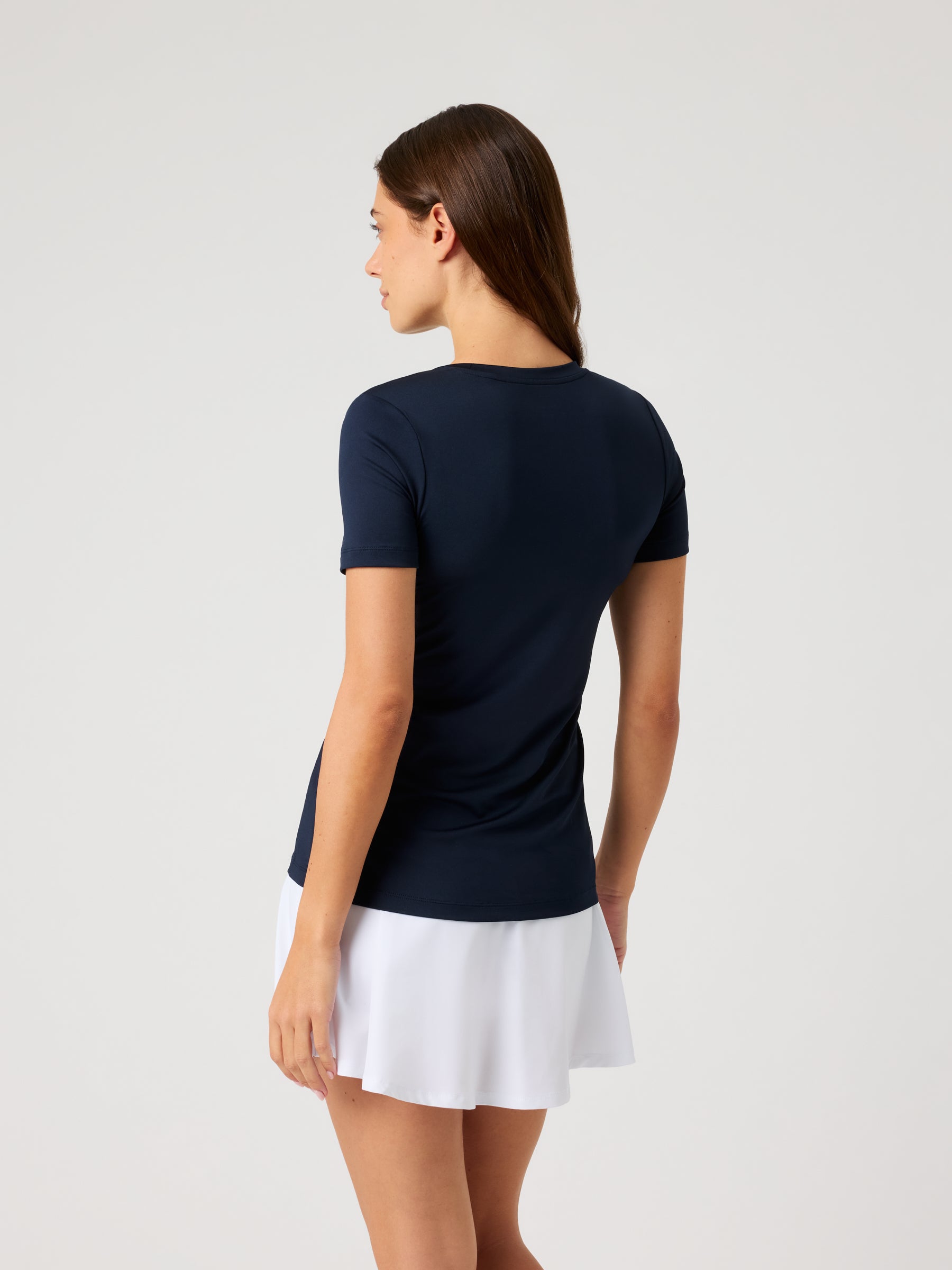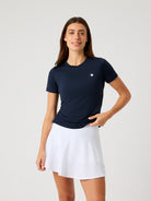 The Björn Borg Ace Slim T-Shirt combines performance with style for women's tennis. Made from soft recycled polyester and elastane, this tee delivers superior stretch and comfort. It features a slim fit design with a round neck and short sleeves, finished with the tennis ball logo on the front.