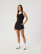 The Borg Sports Shorts combine style and performance for women's training. Crafted from woven 4-way stretch fabric with recycled polyester, these sports shorts offer a regular fit with an inner layer in stretchy fabric for added coverage. An elastic waistband provides support, while the drawstring allows for easy adjustment during tennis, padel or gym workouts.