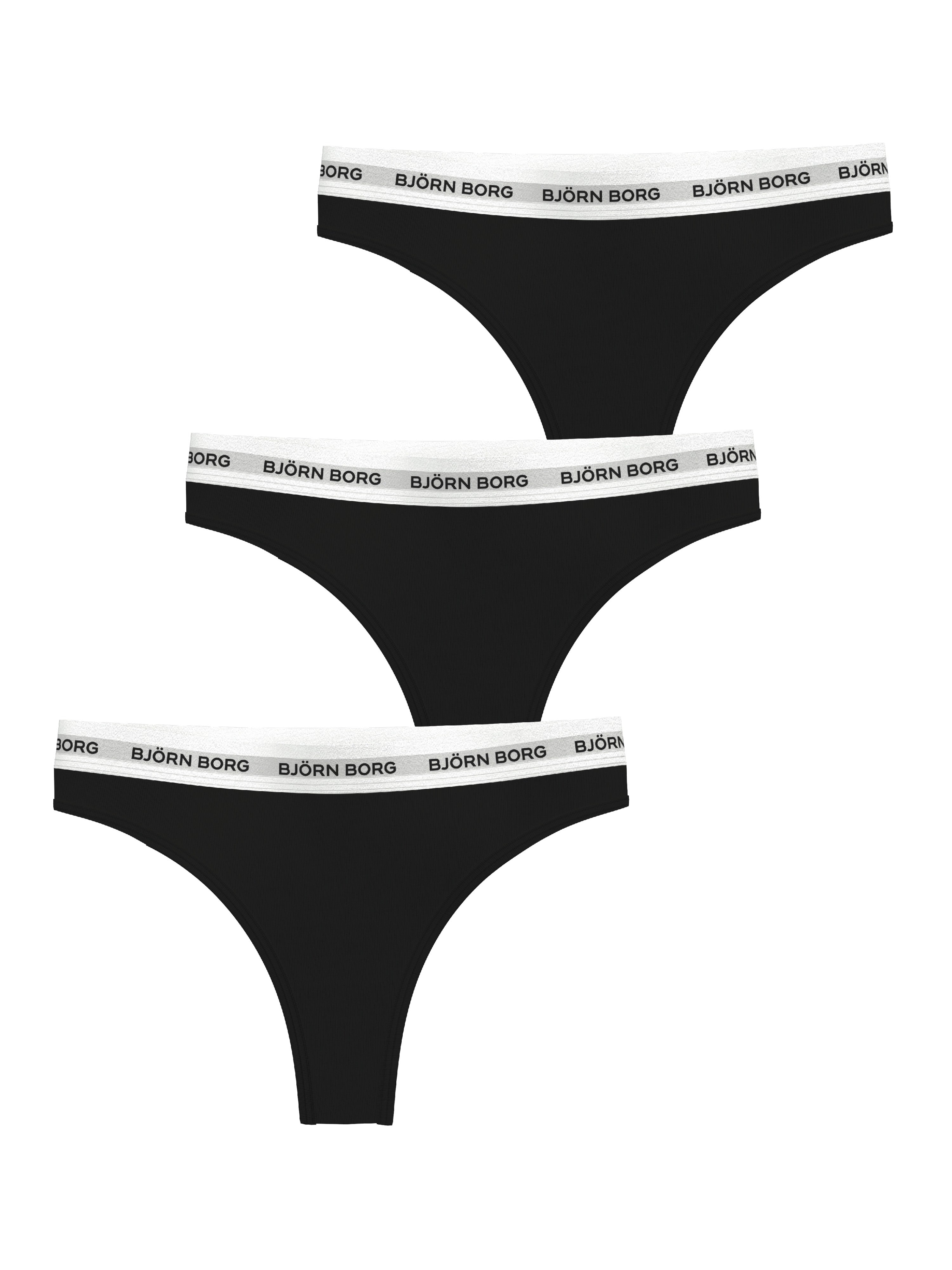 The Björn Borg Logo Thong 3-pack for women is made from soft cotton stretch quality fabric. They have a mid-rise waist, minimal back coverage, and a thin and soft logo elastic waistband for extra comfort. Note: Logo Thong was previously named Core Logo Thong.