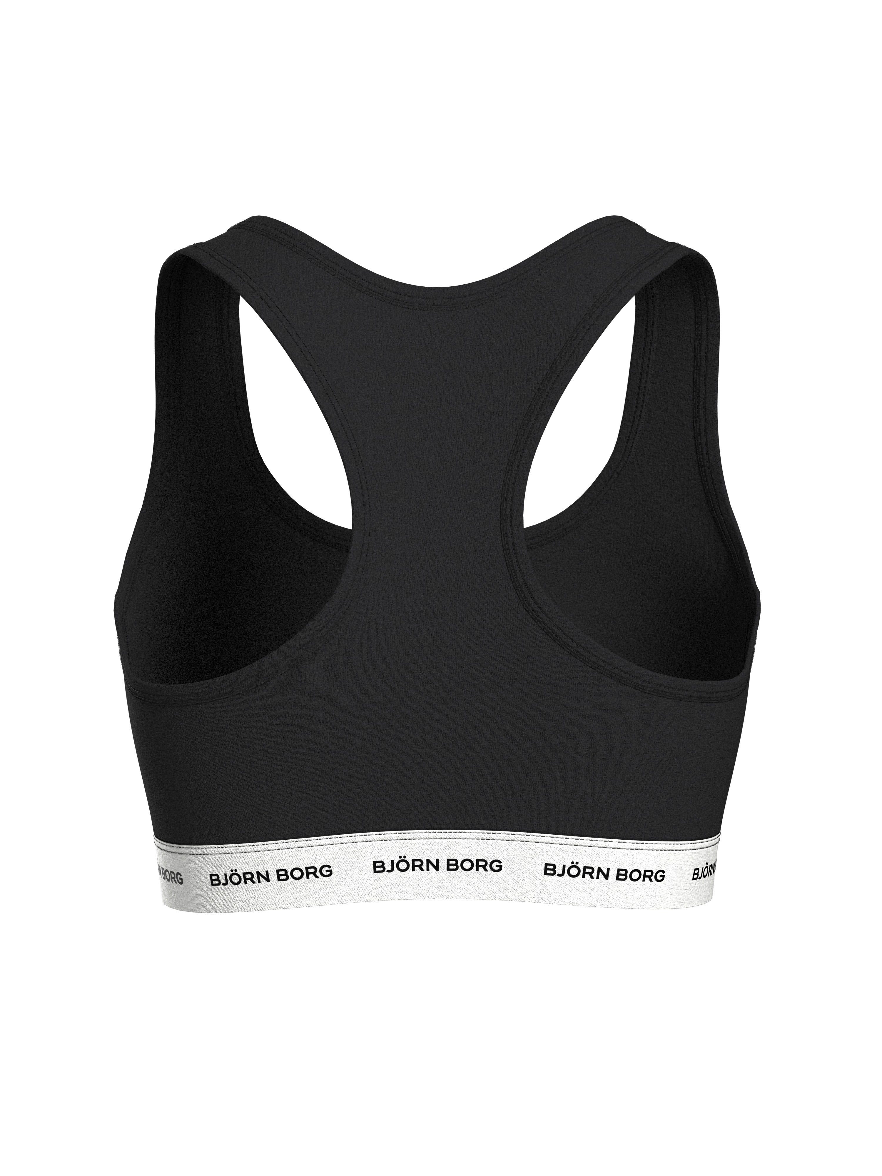 The Björn Borg Core Logo Soft Top 1-pack is an everyday women’s sports bra top made from soft cotton stretch quality fabric in a double layer for support. It features a racerback design, a rounded neck and low support, bindings around the armholes and neck, with a soft branded elastic around the torso.