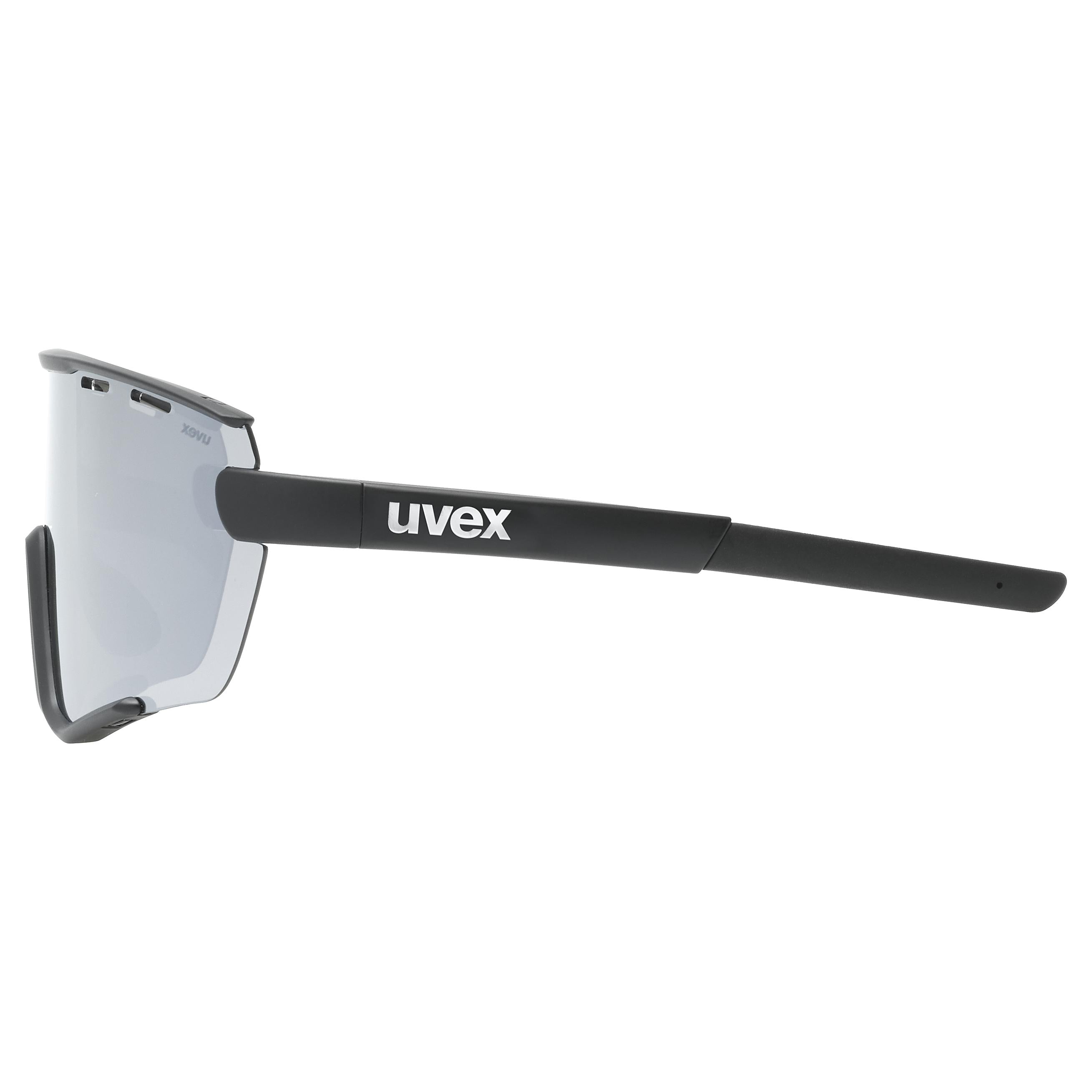 You can wear our uvex sportstyle 236 set anywhere you like. It fits perfectly – and you’ll stand out in style with its clear replacement lens. Yes, you can swap your mirrored oversized shield – which has our uvex supravision® coating for permanently fog-free vision – for the transparent one. Whenever you want. Just press the button on the inside to unlock the earpieces, frame and shield and make the changeover quickly and easily. Plus: all our shields protect you 100% from harmful UV rays. A practical highlight: using the three notches, you can easily change the length of your earpieces for the best fit and maximum comfort.