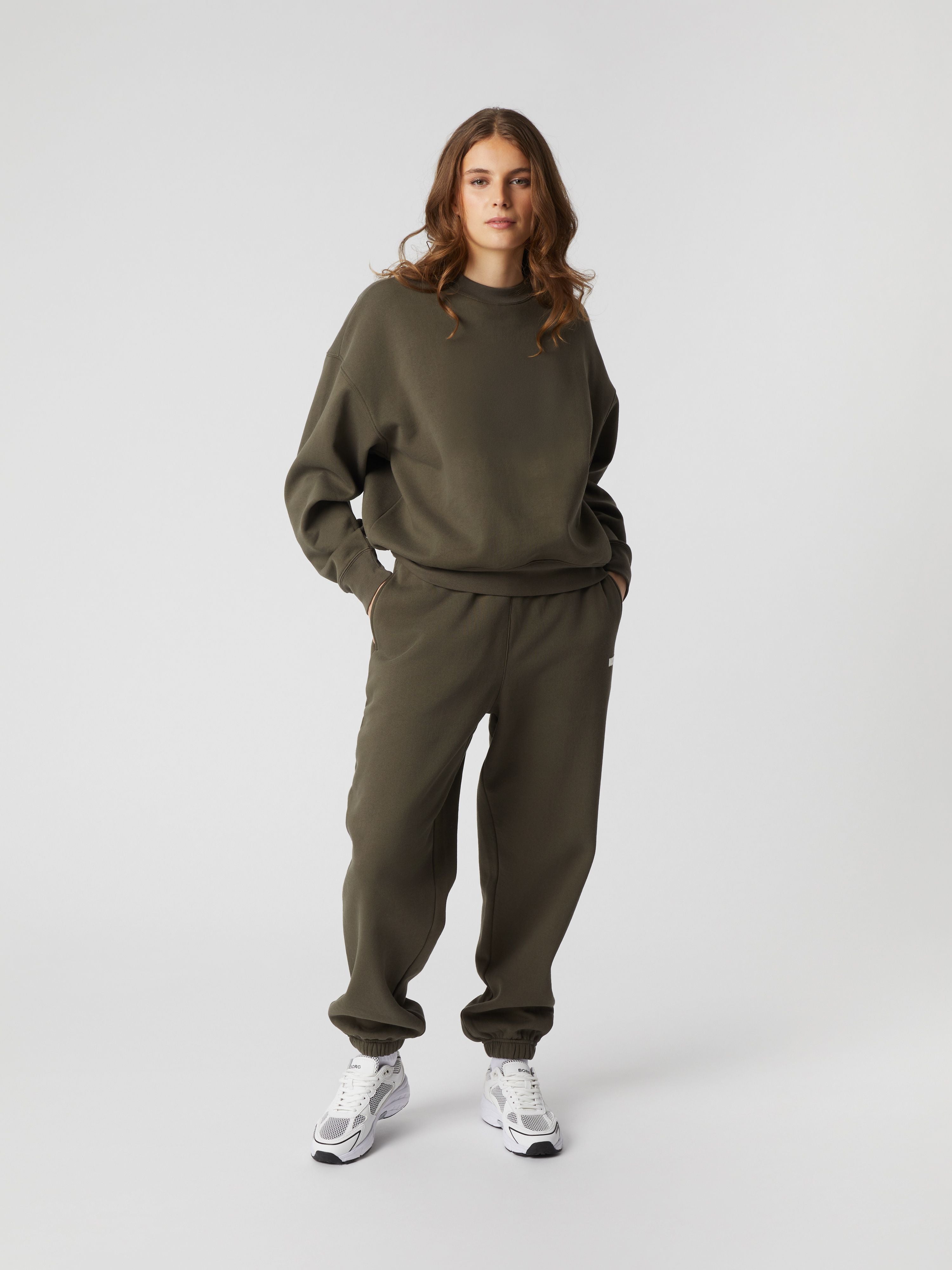 The Björn Borg Studio Oversized Crew sweater for women is made from soft organic cotton and recycled polyester. It comes in an oversized fit with a dropped shoulder and long sleeves, and has a ribbed round neck. Perfect for any occasion.