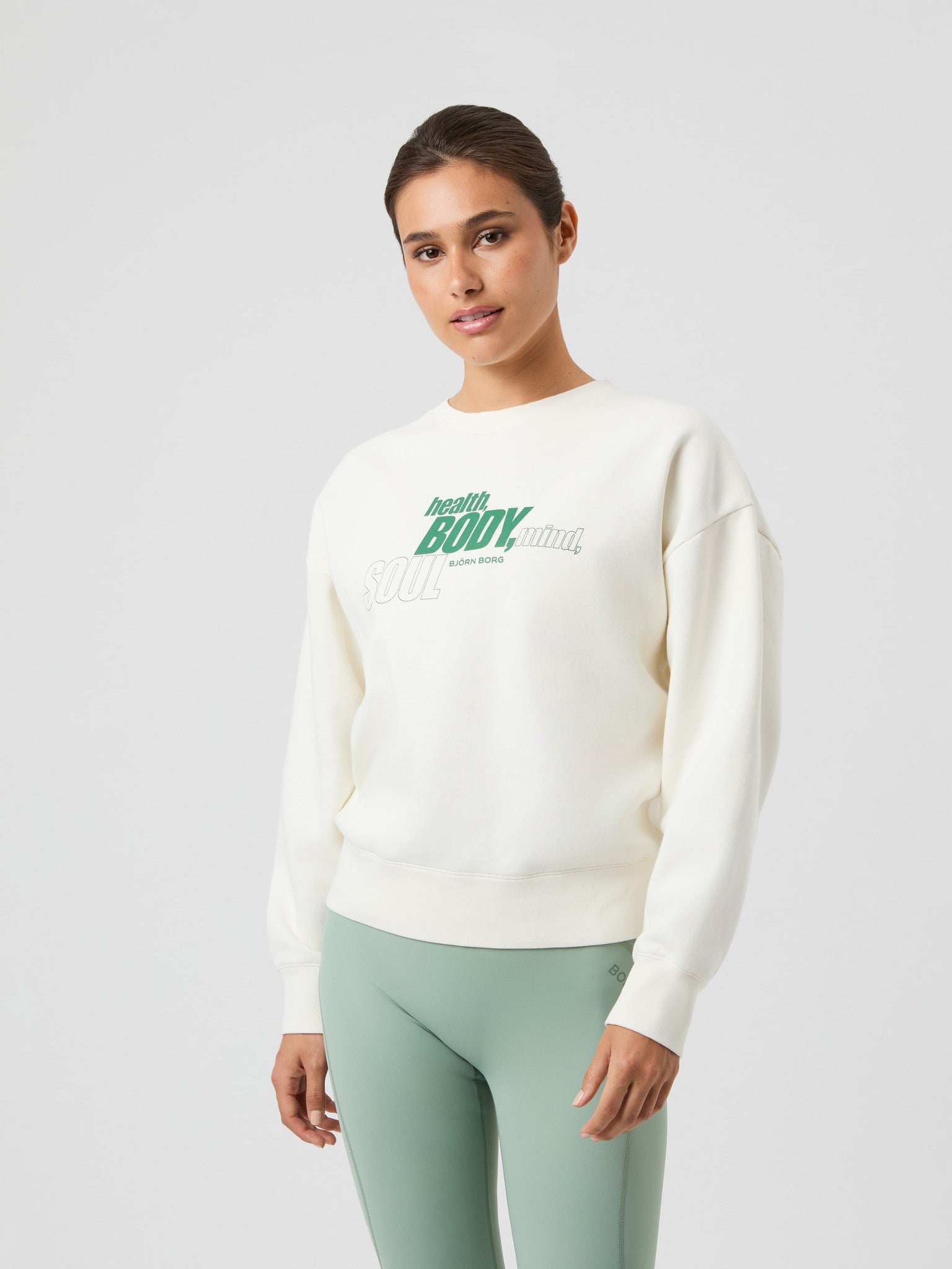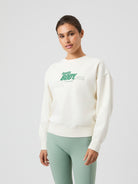 The Björn Borg Borg Boyfriend Sweatshirt for women is made from a blend of recycled cotton and recycled polyester in soft fleece that’s brushed inside. It comes in an oversized fit with a dropped shoulder, and features ribbed cuffs and waist, a ribbed round neck and a graphic print on the front.
