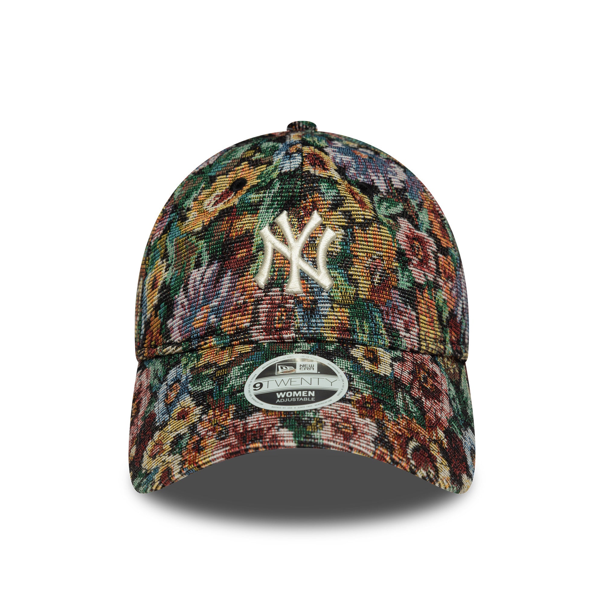 Womens MLB Floral New York Yankees Black 9TWENTY Cap New York Yankees midi logo on front All over floral embroidery New Era Flag embroidered on left Unstructured crown Strapback Curved visor Black undervisor
