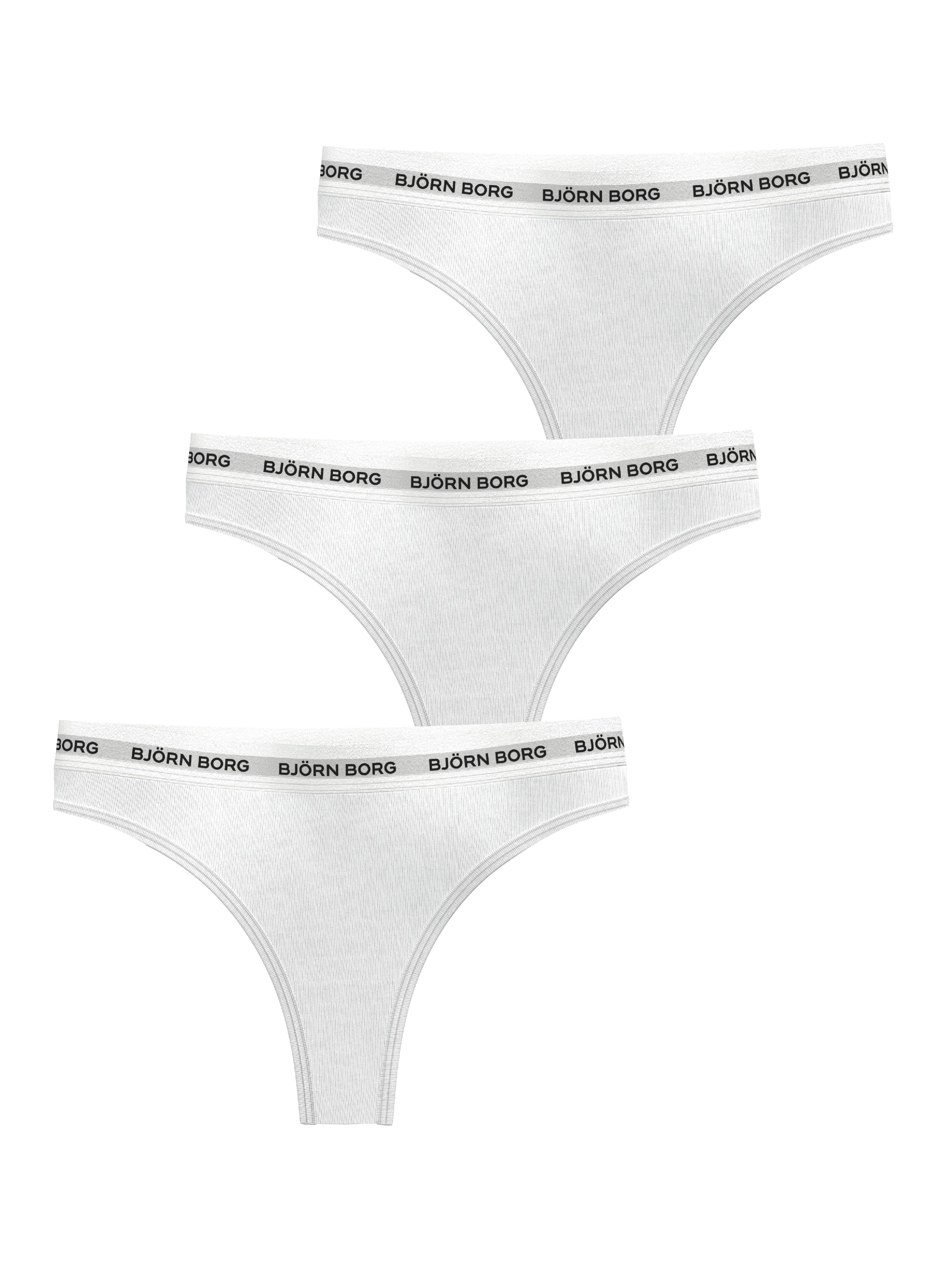 The Björn Borg Logo Thong 3-pack for women is made from soft cotton stretch quality fabric. They have a mid-rise waist, minimal back coverage, and a thin and soft logo elastic waistband for extra comfort. Note: Logo Thong was previously named Core Logo Thong.
